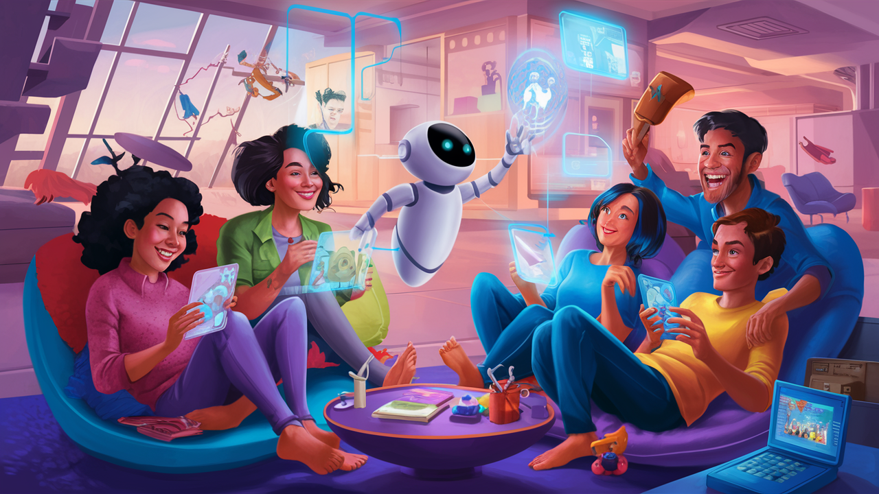 スマートアシスタント:「今日は晴れだよ。外で遊ぶのにぴったりの日だね!」